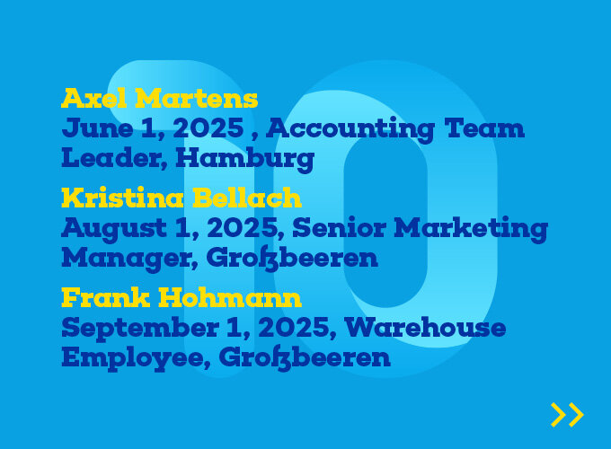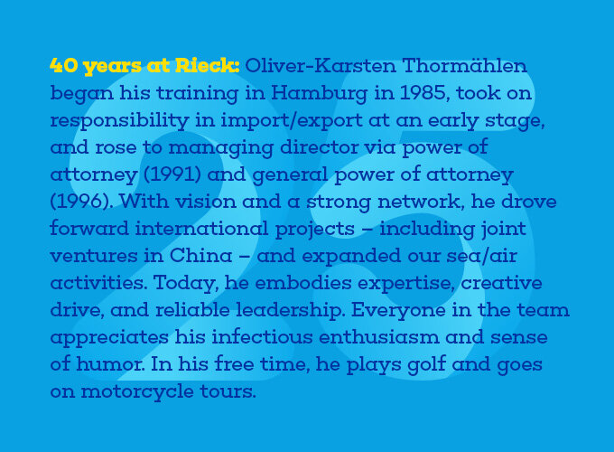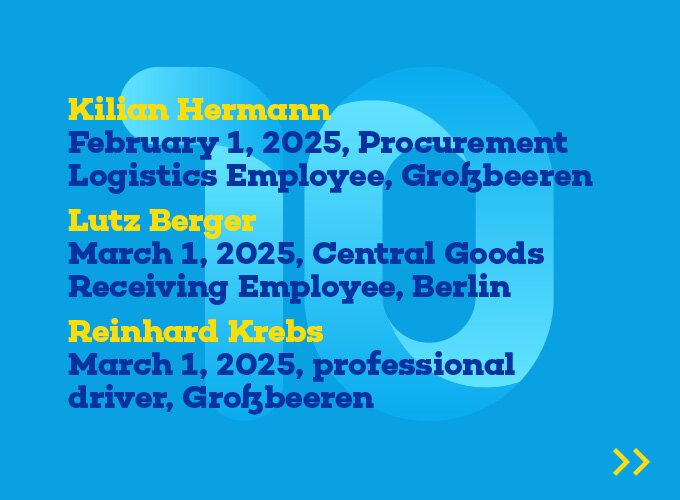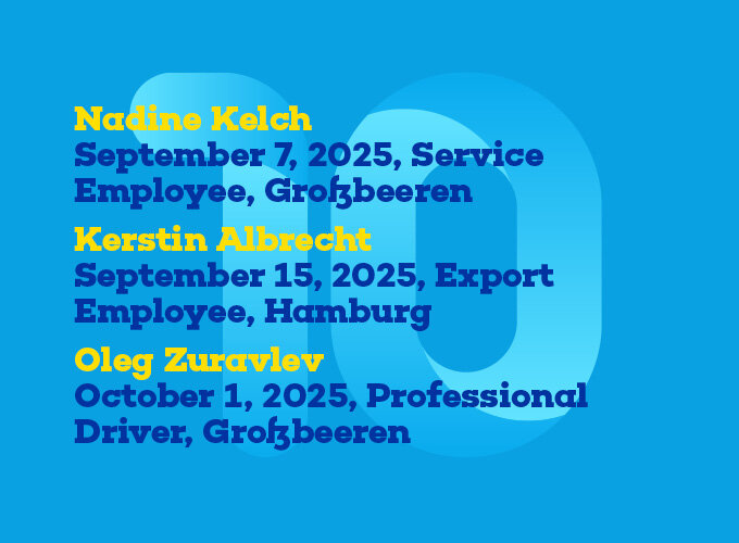Whether on the forklift, in the truck, in customer service or in company management: there is a story behind every anniversary - of reliability, development and unity. As different as the paths may be, they all have one thing in common: they keep Rieck going - day after day. We would like to congratulate all those celebrating anniversaries on their special milestone and thank them for their loyalty!